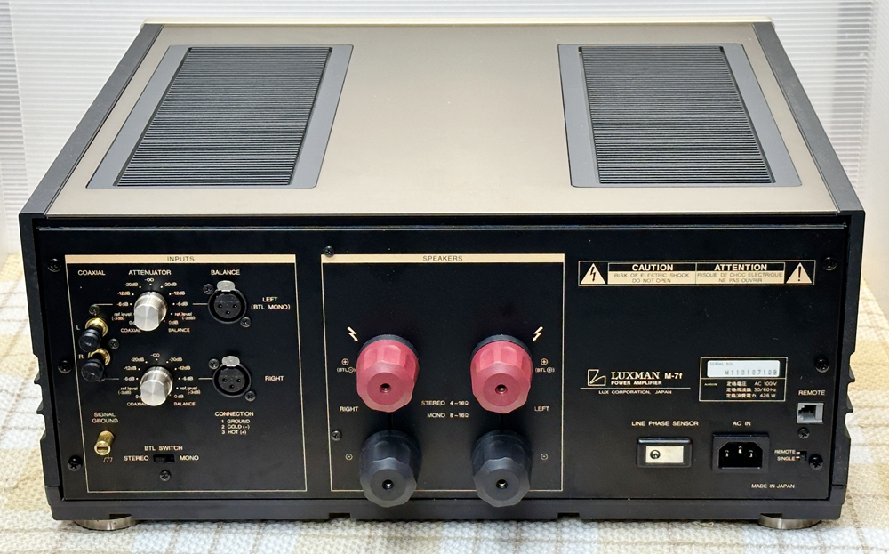 ■連続実効出力(ステレオ):300W+300W(4Ω)、200W+200W(8Ω) |