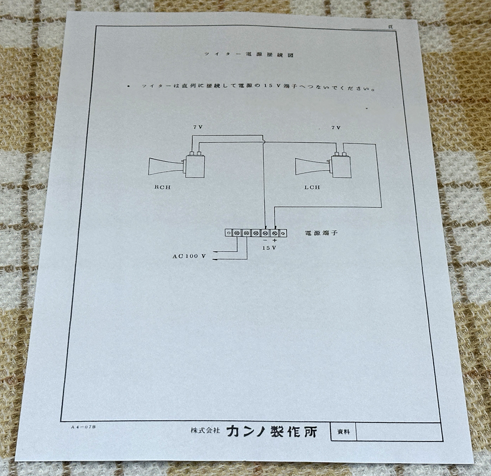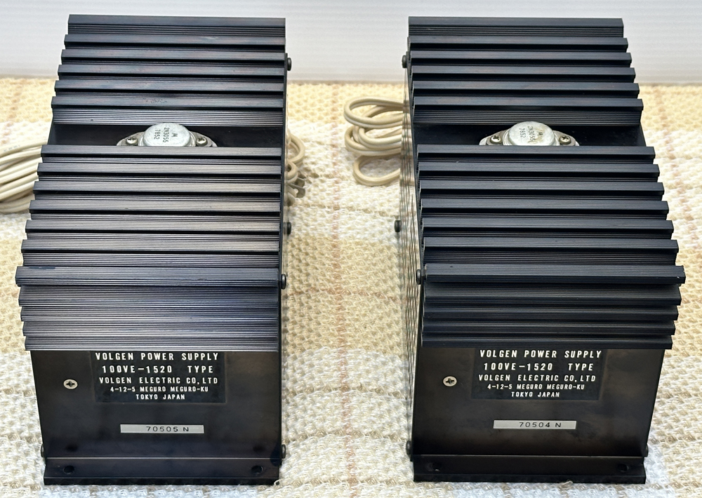 | ■商品の説明:当時のカンノ製作所がWE555や自社製ツイーターの電源として販売していました。最後の画像の通り出力15Vでユニットを直列接続することで、それぞれに7.5Vがかかる仕組みです。当方のテスターでの実測値は無負荷で共に約14Vでした。他にDC15Vの電源としても利用できると思います。 |
