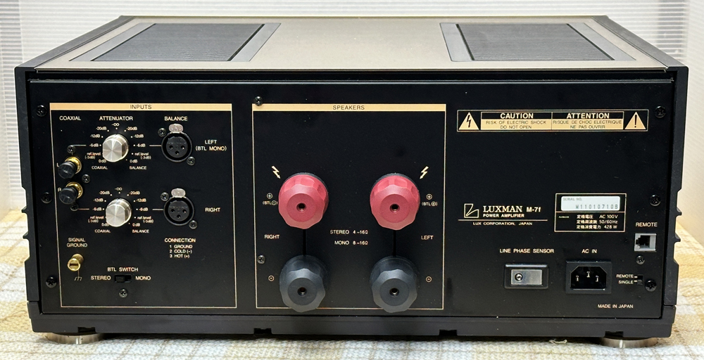 ■連続実効出力(ステレオ):300W+300W(4Ω)、200W+200W(8Ω) |
