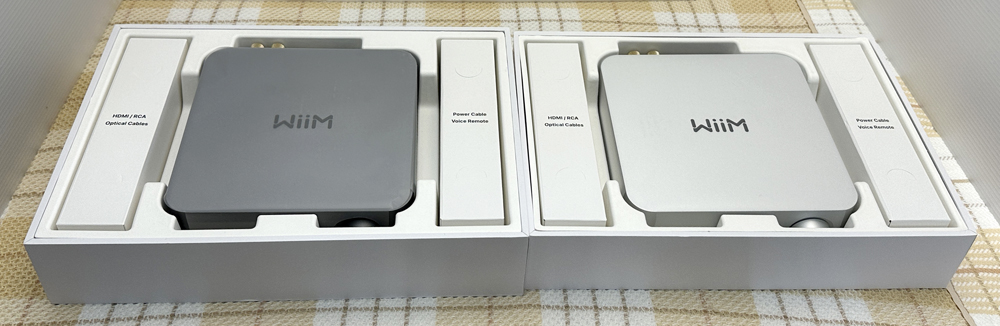 | 上記はWiiM Ampです。色が選べて左がスペースグレー、右がシルバーです。立派な箱に入っています。 | ||||||||